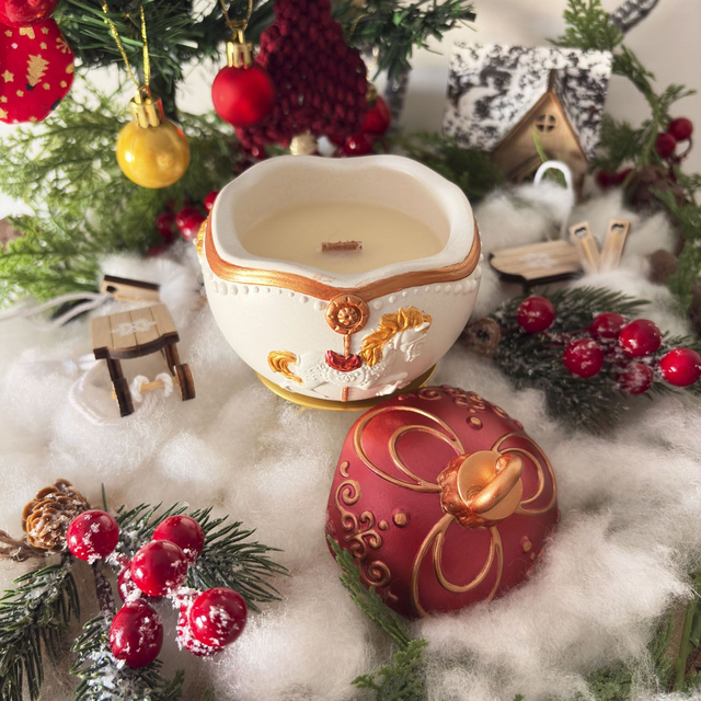 Esta bonita vela en forma de bola navideña con su diseño "Carrusel" alberga en su interior una fragancia llena de nostalgia. El aroma de sus especias navideñas como el anís, el clavo o la regaliz, combinado con el toque cítrico del limón y su base de vainilla te hará viajar en el tiempo, compartiendo risas y amor con tus seres queridos. Cierra los ojos y revive ese sentimiento tan bonito y especial.